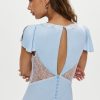 Delicate midi dress lives up to its name with feminine charm and thoughtful construction. Fluttery flounce sleeves add movement, while a keyhole at the back is secured with a row of functional buttons.