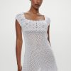 Eloise mini dress is crafted in our Angel’s Meadow crochet fabric and designed with a floral motif at the bust and sleeves. With a flattering fit through the chest and an easy shape throughout, this extra mini silhouette can be worn as a dress or layered over your favorite swim.