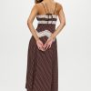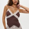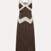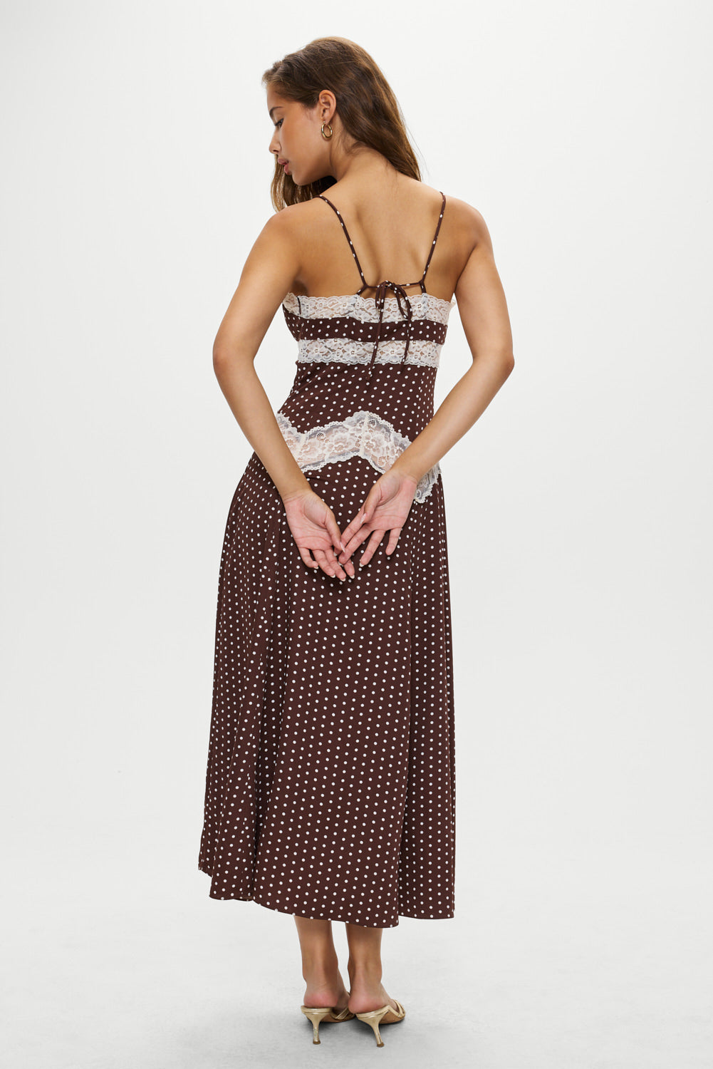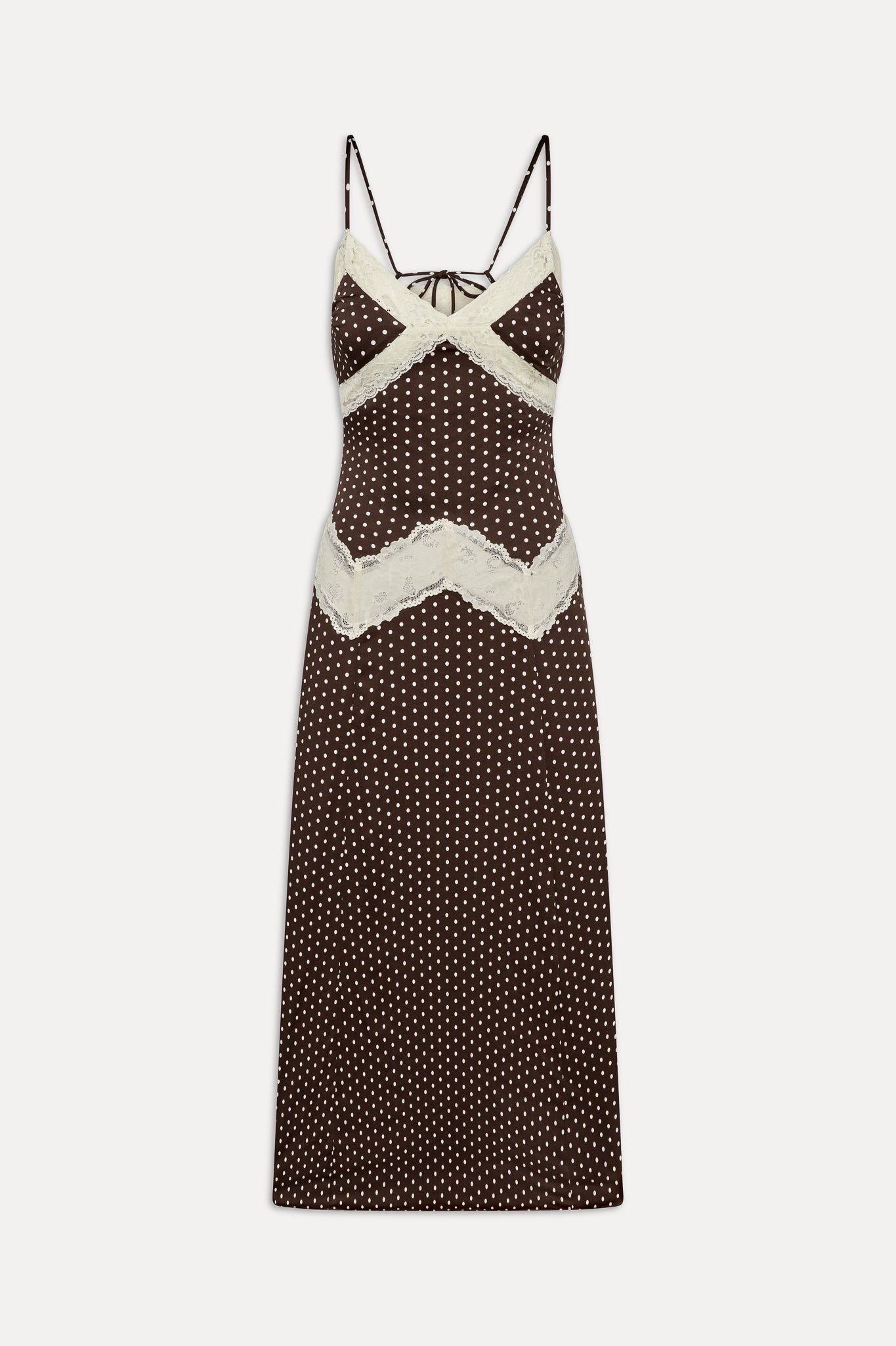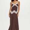 Ethereal satin maxi dress is an unapologetically romantic piece. Designed with see-through lace that traces the neckline and hips, this silhouette flatters and reveals in all the right places.