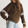 Sloane oversized knit sweater leans into a true oversized fit that feels borrowed from your boyfriend’s closet. Baby blue stripes and ribbed trims add a fresh contrast against the rich brown body, while a special embroidered F logo nods to its signature touch.