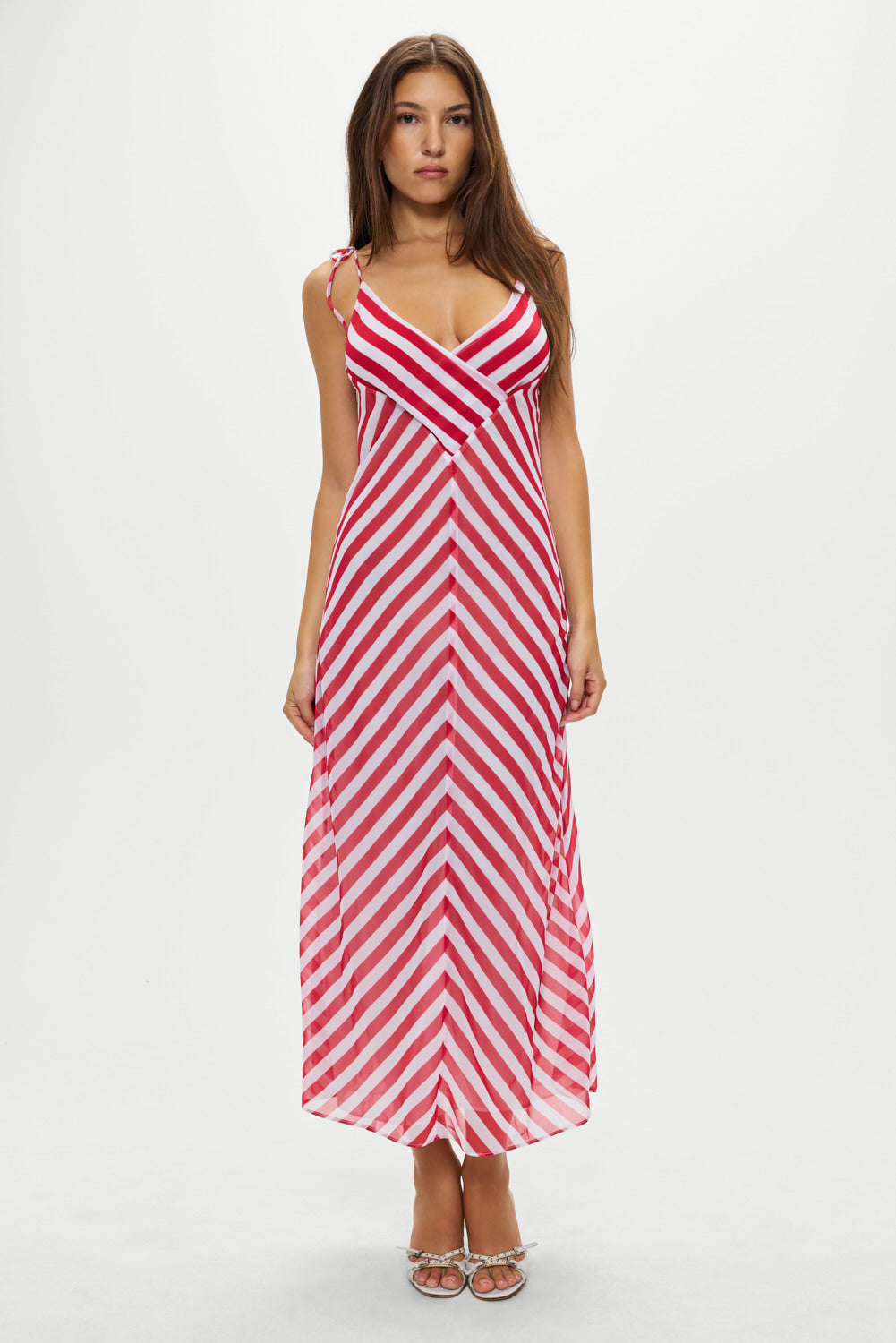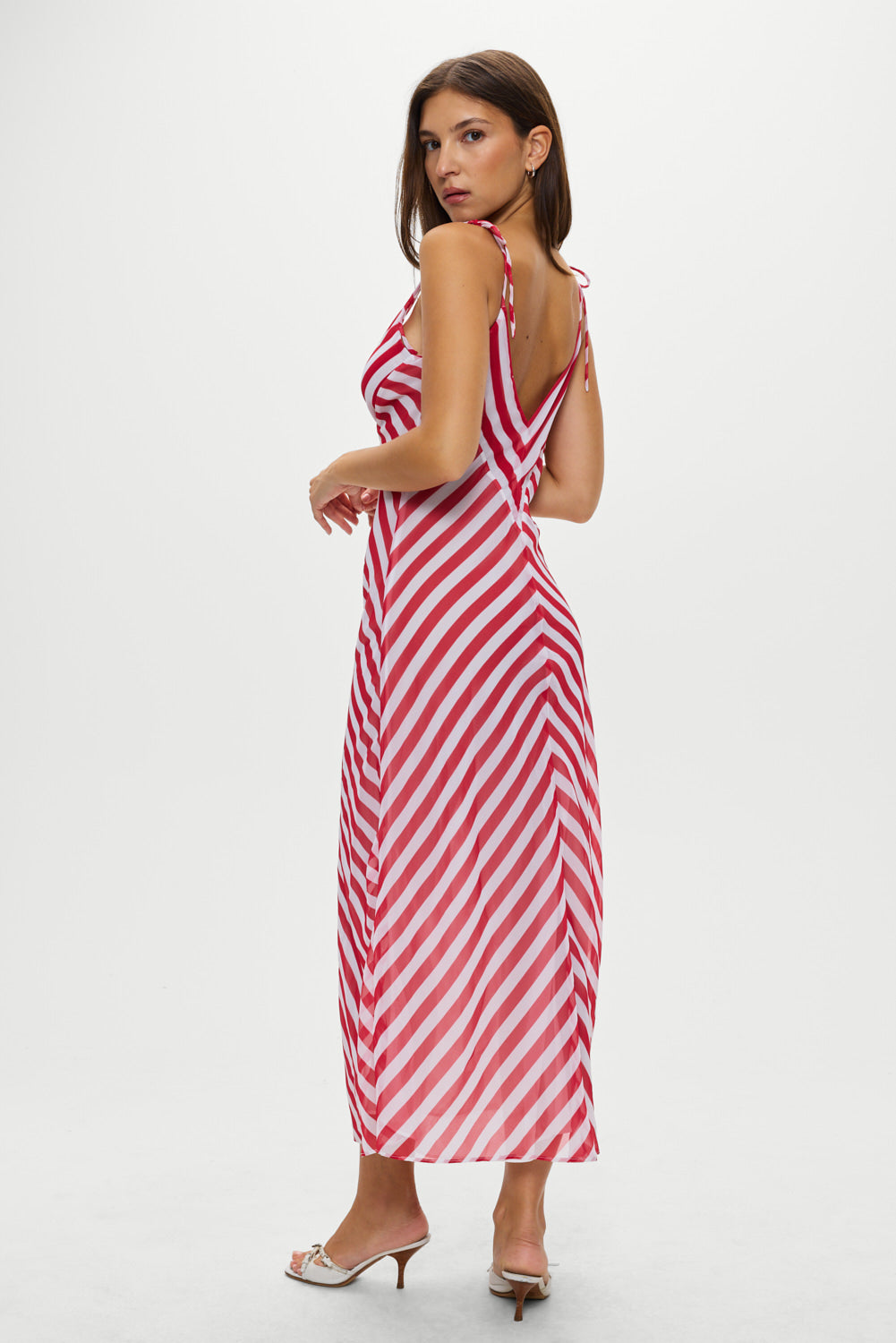 Somer midi dress is the definition of easy elegance. Crafted from sheer chiffon, this striped beauty plays with directional lines to flatter the body. With its barely-there feel and soft drape, this dress is a simple yet striking piece for dreamy days and balmy nights.
