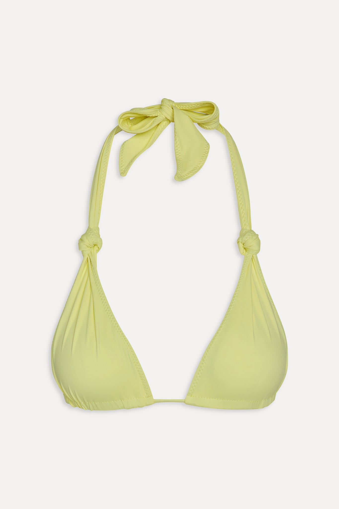 Kealy triangle bikini top, an ode to early 2000s bombshell swimwear. The Kealy bikini top is designed with halter support and knot ties that adjust to your coverage preference.