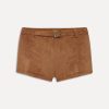booty shorts bring a western edge to your festival wardrobe. These tiny yet supportive shorts feature medium back coverage. Whether styled over a bikini or worn on their own, these shorts are a showstopper. Exclusively from the Bella Hadid x Frankies Bikinis collaboration.
