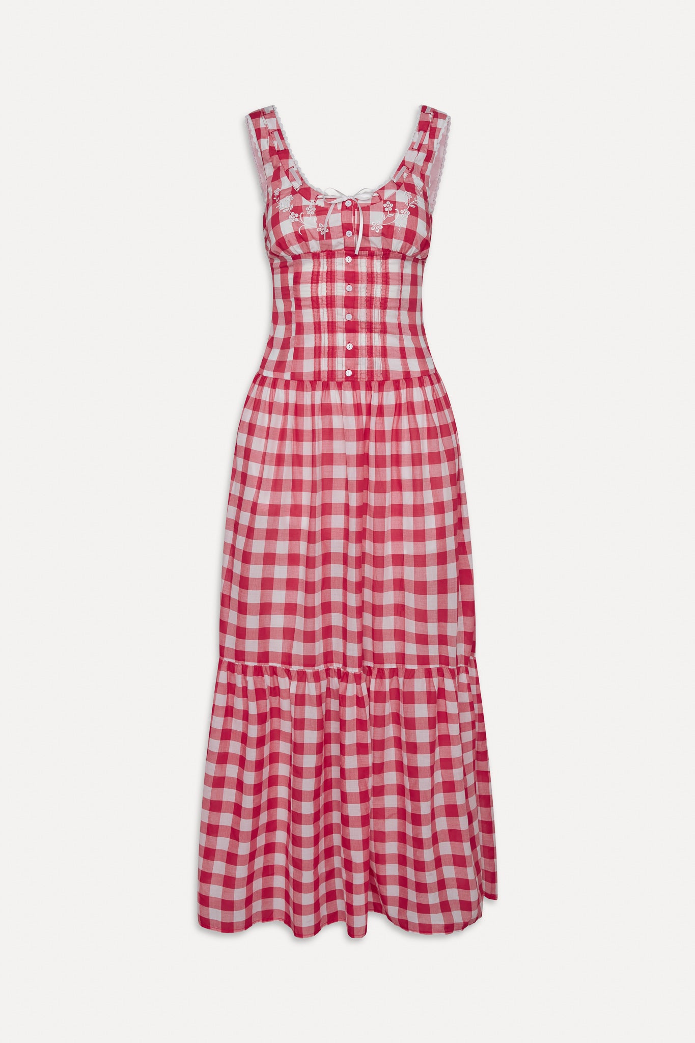 midi dress. A smocked back offers fit flexibility, while a ribbon threaded through the neckline adds feminine charm. This dress is made for picnics, porch swings, and twirling under the sun. Exclusively from the Bella Hadid x Frankies Bikinis collaboration.