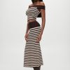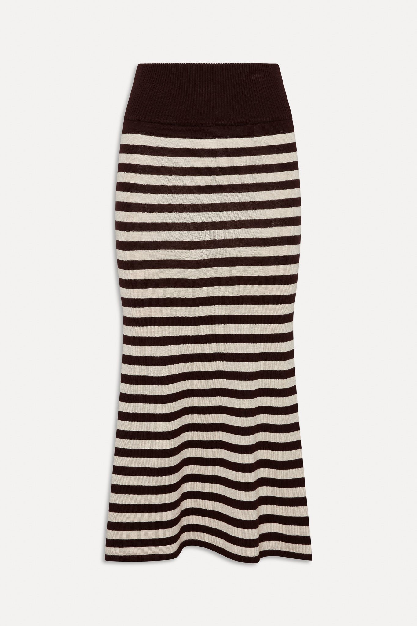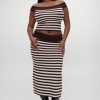 midi skirt features a fold-over brown ribbed waistband that sits comfortably on the hips. It’s the perfect versatile piece for dressing up or down. Exclusively from the Bella Hadid x Frankies Bikinis collaboration.