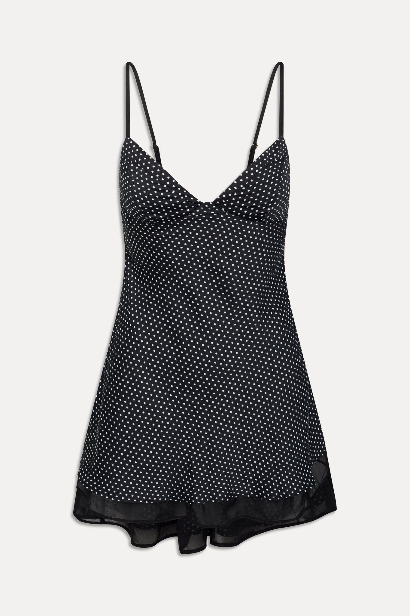 Kenley satin mini dress, exclusively from the Frankies Bikinis x Khy collaboration. This dress arrives in featherlight fabric with a new polka dot print. Complete with adjustable straps and a hidden side zipper for the perfect fit.
