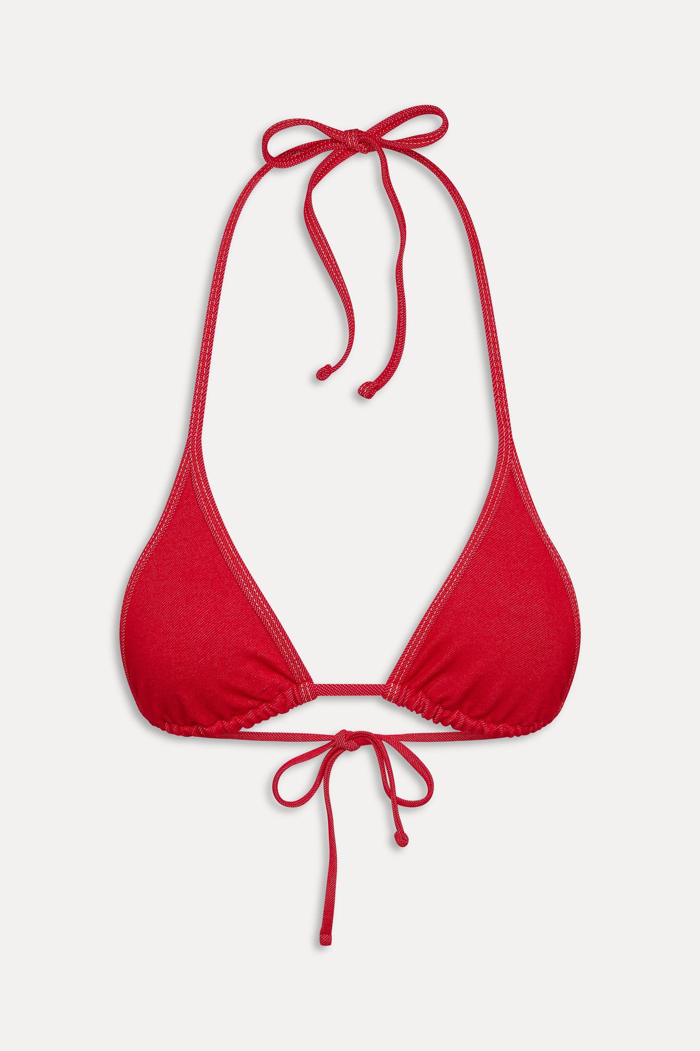Be the first to review “Frankies Bikinis Women’s Swimwear Paradise Denim Halter Bikini Top | Red Denim” Cancel reply